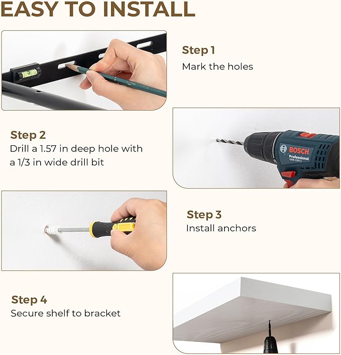 - Sturdy & Secure design: These 32-inch floating shelves feature a durable, concealed mounting bracket that offers reliable support for your belongings. Engineered for hassle-free and stable installation, each shelf includes all the required hardware to ensure a strong, wobble-free hold—perfect for showcasing your favorite decor, photos, or everyday items with confidence and style.