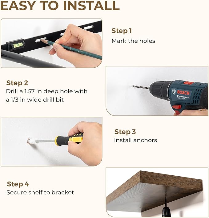 - Sturdy & Secure design: These 36-inch floating shelves feature a durable, concealed mounting bracket that offers reliable support for your belongings. Engineered for hassle-free and stable installation, each shelf includes all the required hardware to ensure a strong, wobble-free hold—perfect for showcasing your favorite decor, photos, or everyday items with confidence and style.