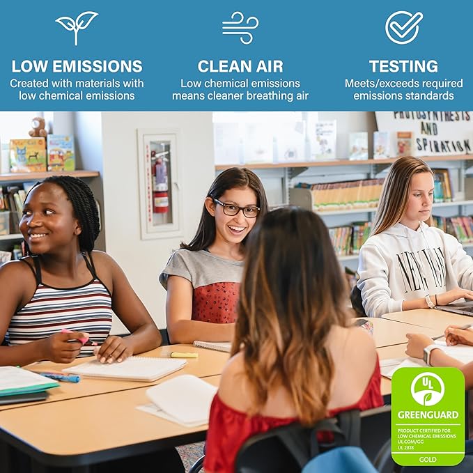 FDP Rectangle (30 x 72 inch) Classroom Table with Adjustable Chunky Toddler Legs (15-24 in); Preschool, Kinder and Daycare Furniture - Pasadena Oak Top/Navy Edge and Legs