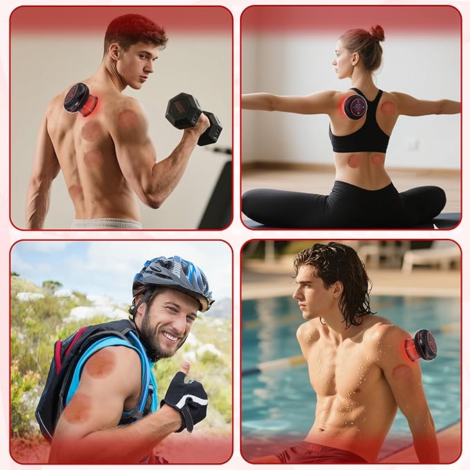 - 【Heat Therapy for Deep Relaxation】This cupping machine has a built-in heating function that helps relieve aches and fatigue in the neck, shoulders, back, and waist.