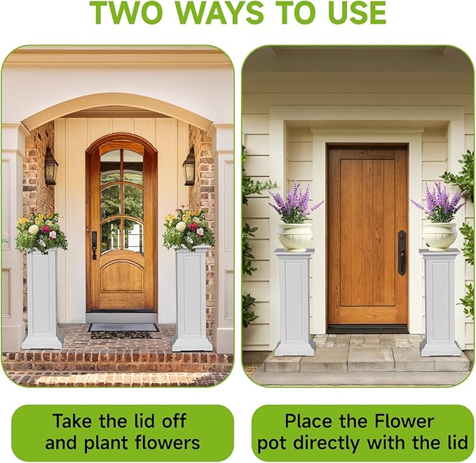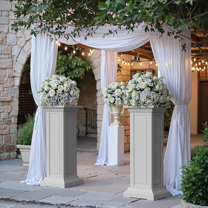 EFU 36'' Tall Planters Outdoor Set of 2 Resin Planter,Modern Design Garden Bed, Built-in Drainage,for Patio Backyard Weddings Events Home Decor,Crack-Resistant,All-Weather Durability(Ashen)