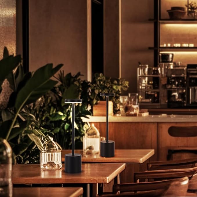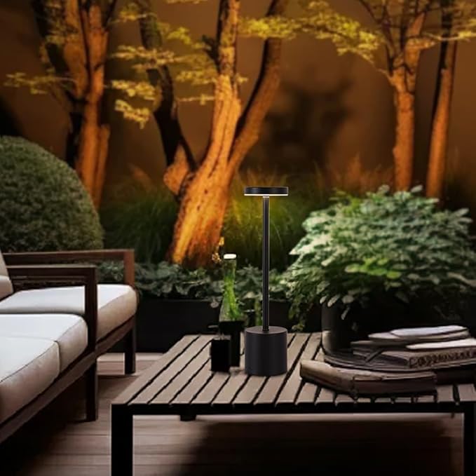 Cordless Table Lamp, 5000mAh Rechargeable Battery Powered LED Desk Lamp, Portable Touch Control Outdoor Table Lamps,3 Color Dimmable Light for Restaurant, Patio, Bedroom, Night Lamp (Black)