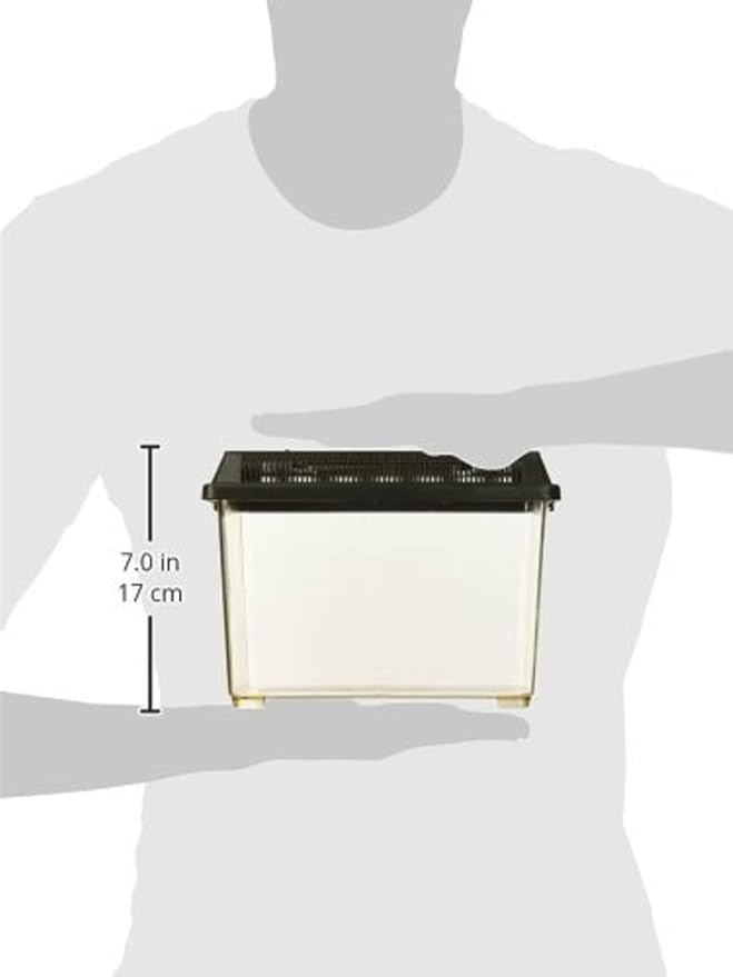 - Small plastic terrarium measures 9 inches by 6 inches by 6.5 inches