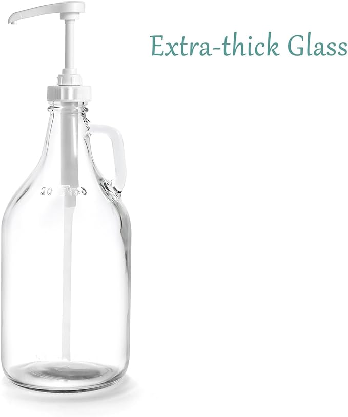 Glass Laundry Detergent Dispenser with Pump, 64OZ Liquid Laundry Soap Dispenser, Fabric Softener Dispenser Bottle for Laundry Room Organization and Storage, 2 Pack