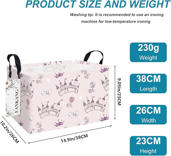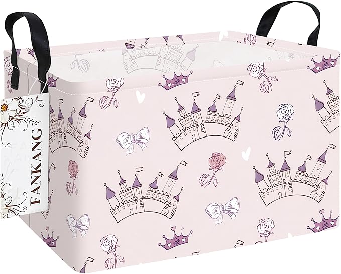FANKANG Storage Bins, Nursery Hamper Canvas Laundry Basket Foldable with Waterproof PE Coating Large Storage Baskets for Kids Boys and Girls, Office, Bedroom, Clothes,Toys(Rec-Princess Castle