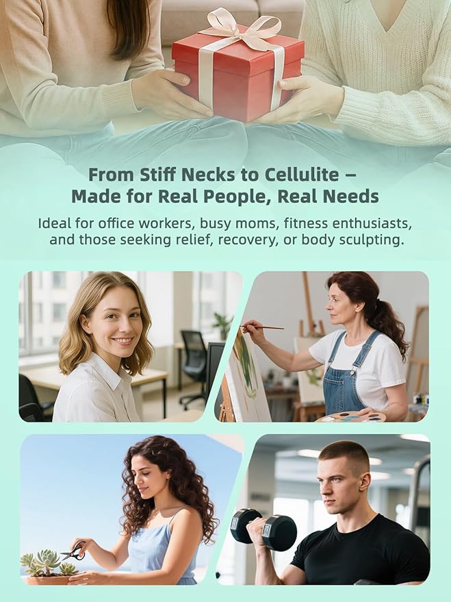 - Complete Kit, Gift-Ready & 1-Year Warranty:Includes main device, 6 cups, massage oil, plus 1-year after-sales warranty for peace of mind. Compact and portable — a thoughtful gift for moms, dads, partners, fitness lovers, and anyone who values health, beauty, and relaxation.