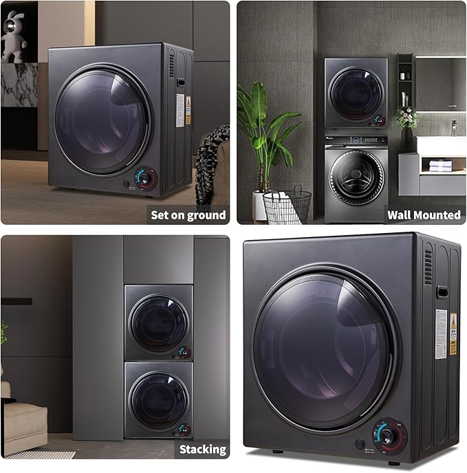- 【Flexible Installation】 The portable dryer for apartments supports wall-mounted, stacked or stand-alone placement, space-saving; compact size (23.62'' x 18.9'' x 26.77'') to easily fit into small areas, the first choice for renting rooms or apartments.