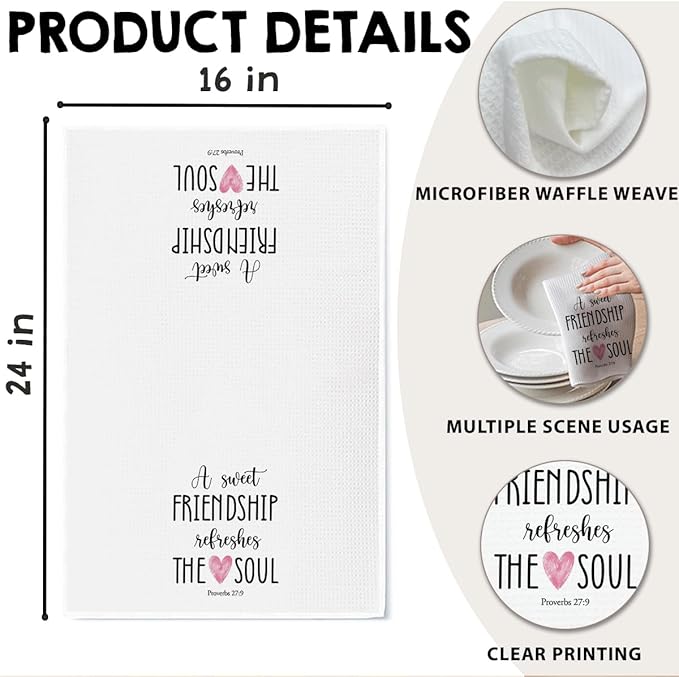 Friendship Kitchen Towel, A Sweet Friendship Refreshes The Soul, Christian Hand Towel Gift for Friend, Inspirational Tea Towel for Bathroom or Kitchen