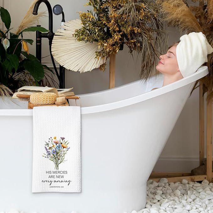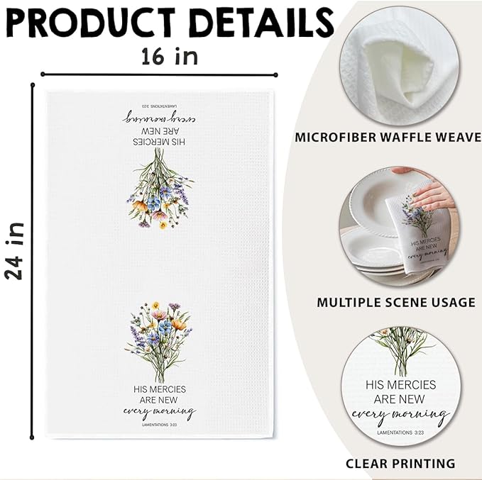 Christian Kitchen Towel, Waffle Weave Microfiber Scripture Hand Towel, His Mercies are New Every Morning Bible Verse Farmhouse Decor for Kitchen Bathroom, Inspirational Gift for Women