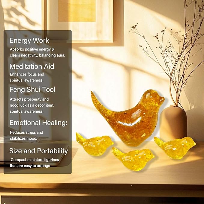 Crystal Bird Figurines, Resin Animal Statues, Miniature Decorative Gravel Birds, Home Decor (4PCS-Citrine)