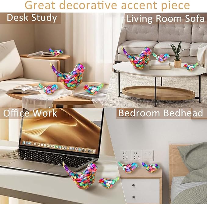 Crystal Bird Figurines, Resin Animal Statues, Miniature Decorative Gravel Birds, Home Decor (4PCS-Colorful)