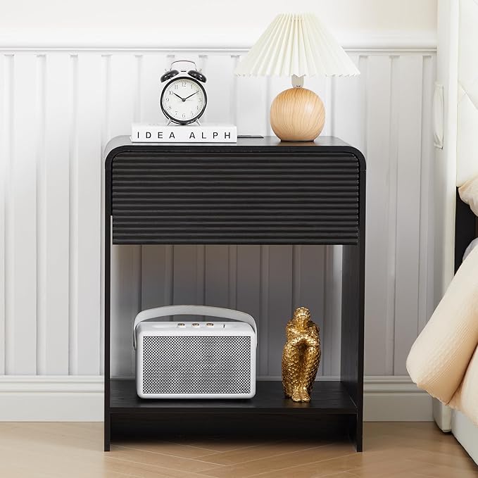 - 【Minimalist & Practical】 Our bed side table boasts a minimalist curve profile and a drawer with a unique waveform panel, perfectly balancing modern aesthetics with functional design. The chic appearance complements various bedroom styles, from contemporary to mid-century modern. The smooth lines and rounded corners make it safe for kids and families, creating a standout piece that elevates the ambiance of your room.