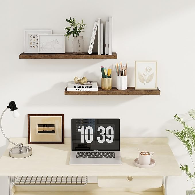 - EASY TO ASSEMBLE: Upgraded hidden mounting bracket aligns ensure a sleek floating effect, making the shelves secure. Instructions, a magnetic level, drywall anchors, and screws are included, making it easy to mount these rustic shelves gap-free in under 8 minutes