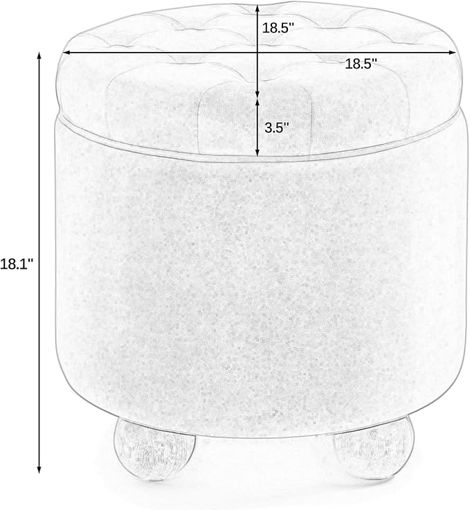 - [Perfect Size] - 18.5"Round; 18.5"D x 18.5"W x 18.1"H. Weight up to 300LBS. The footstool has solid and durable legs which can not be easy to collapsed. The storage ottoman round is also fairly lightweight, which makes it easy to move around. The foot stool also has perfect height to match your couch and you can put your feet up on it.
