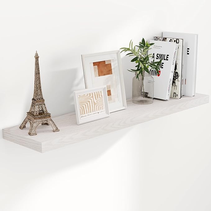 - 【FARMHOUSE RUSTIC WALL SHELF】These floating shelves are made of premium engineered wood board and invisible one-piece bracket. The rustic wooden grain surface add character and warmth to any modern or traditional interior with these thick floating shelves, contrast shelves at staggering heights on the wall or mount side-by-side or in the corner for a clean streamlined look.