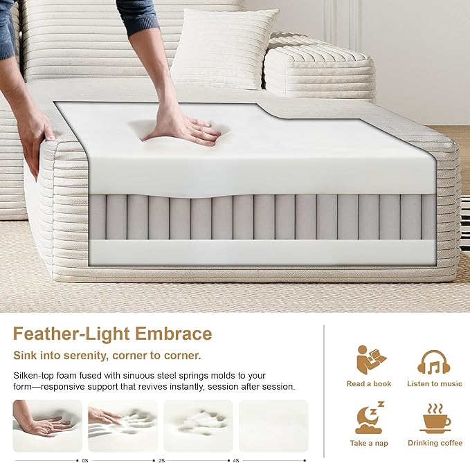 108" Sectional Couches for Living Room Modern Modular Sofa with L-Shape Couchs Upholstered Boneless Couch Deep Seat Sectional Couch with Chaise (White, Right Facing Chaise+2Seaters+1Ottoman)