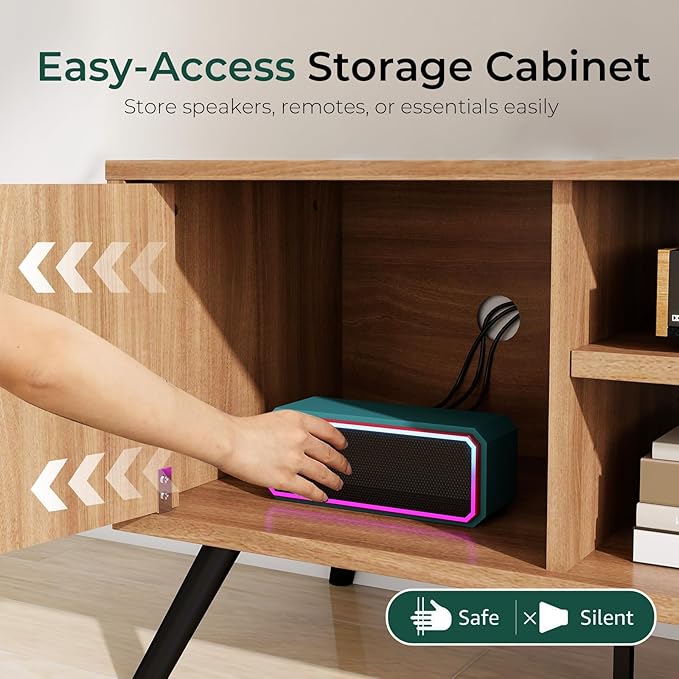 - Smart Storage, Clutter-Free Living: Features 2 enclosed cabinets and an open adjustable shelf to store media, books, or décor. Built-in rear cord holes keep cables neat, making it a functional tv stand with storage